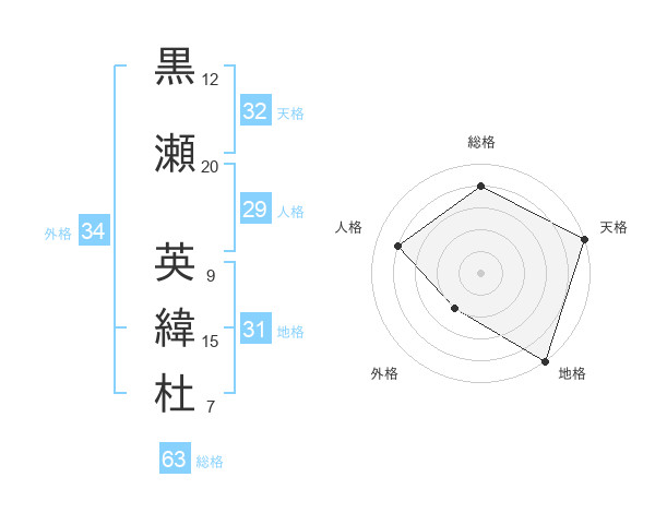 黒瀬 英緯杜さんを姓名の画数から五運を鑑定