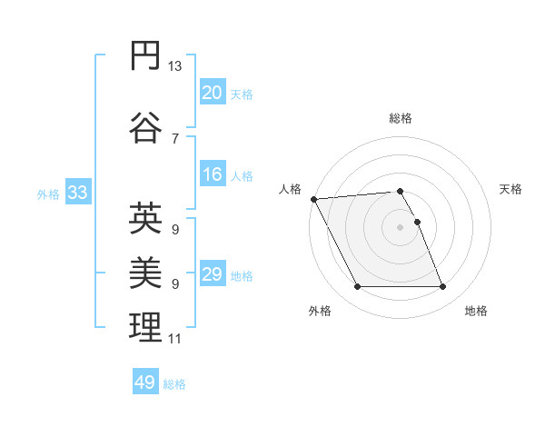 円谷 英美理さんを姓名の画数から五運を鑑定