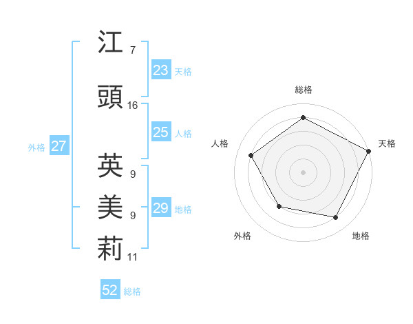 江頭 英美莉さんを姓名の画数から五運を鑑定
