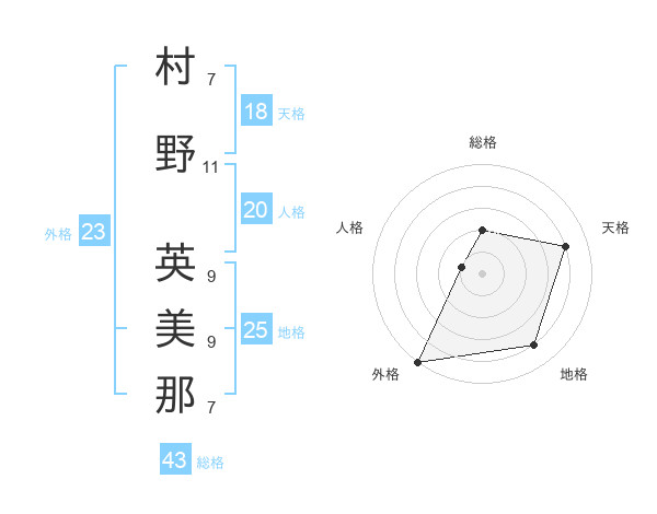 村野 英美那さんの外格は23画の5点!
