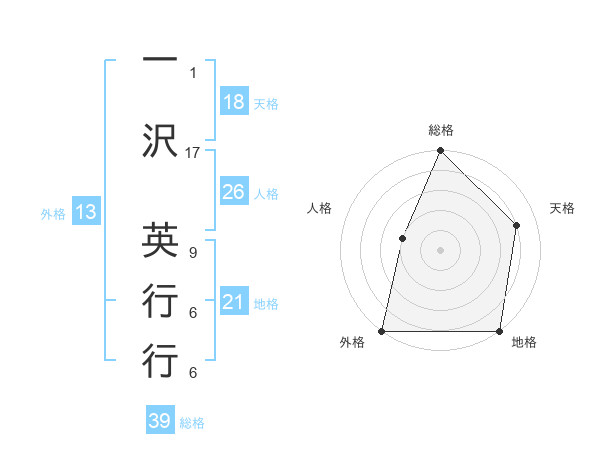 一沢 英行行さんを姓名の画数から五運を鑑定