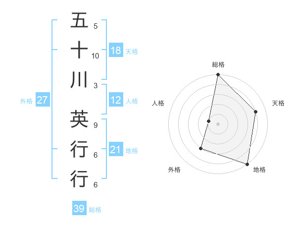 五十川 英行行さんを姓名の画数から五運を鑑定