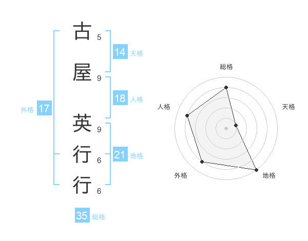 古屋 英行行さんの総格は35画の4点!