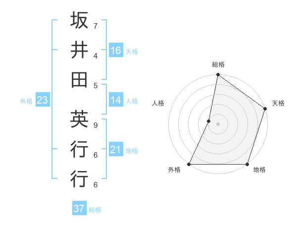 坂井田 英行行さんを姓名の画数から五運を鑑定
