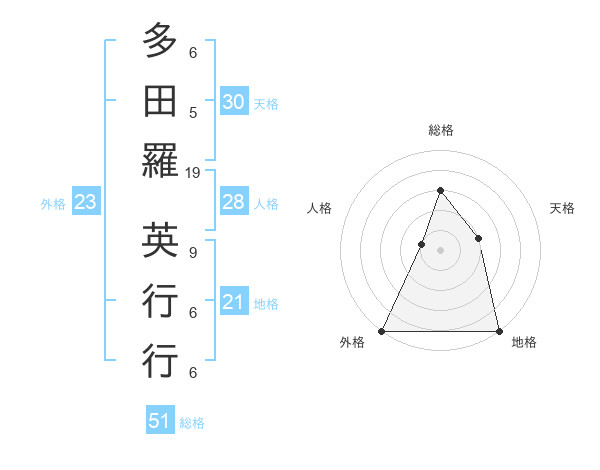 多田羅 英行行さんを姓名の画数から五運を鑑定