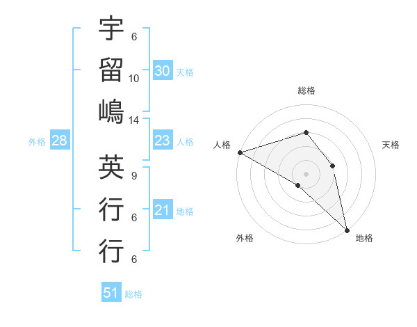 宇留嶋 英行行さんを姓名の画数から五運を鑑定
