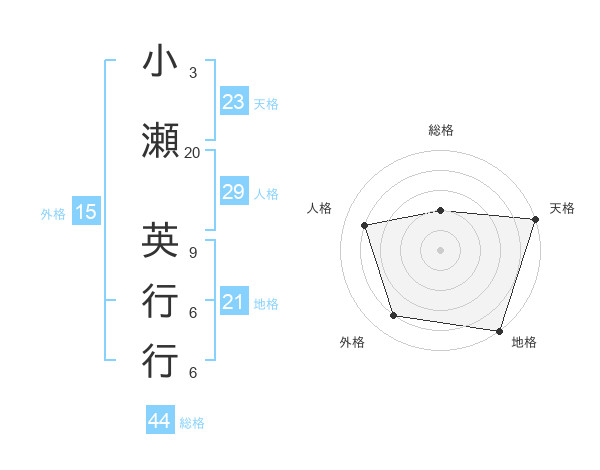 小瀬 英行行さんを姓名の画数から五運を鑑定