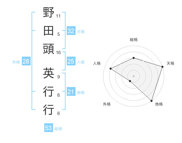 野田頭 英行行さんの総格は53画の3点!