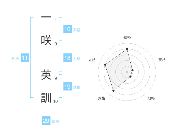 一咲 英訓さんを姓名の画数から五運を鑑定