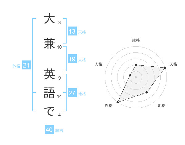 大兼 英語でさんの天格は13画の5点!