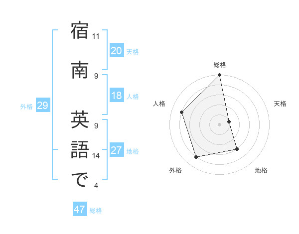 宿南 英語でさんの天格は20画の1点!