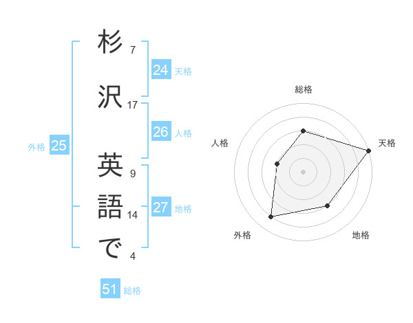 杉沢 英語でさんの天格は24画の5点!