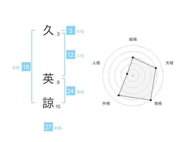久 英諒さんの総格は27画の3点!