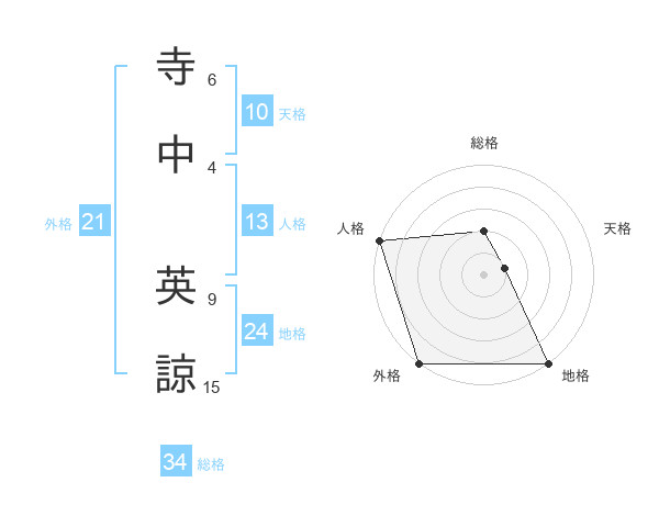 寺中 英諒さんの外格は21画の5点!