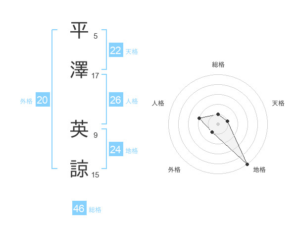 平澤 英諒さんを姓名の画数から五運を鑑定