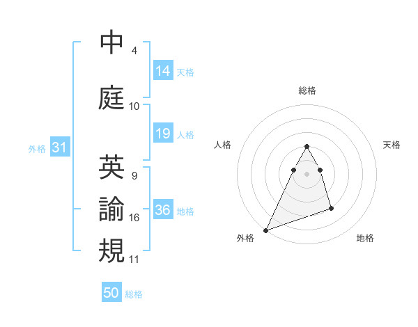 中庭 英諭規さんの外格は31画の5点!
