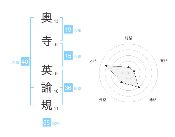 奥寺 英諭規さんの天格は19画の1点!