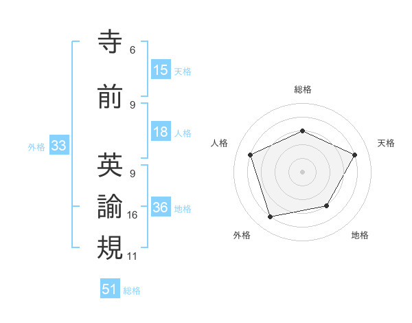 寺前 英諭規さんの総格は51画の3点!