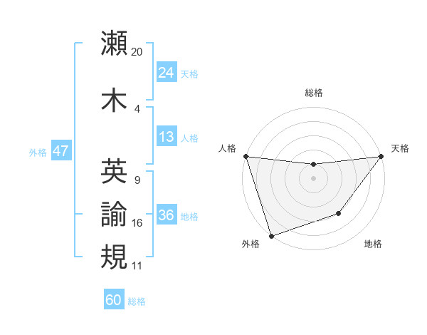 瀬木 英諭規さんを姓名の画数から五運を鑑定
