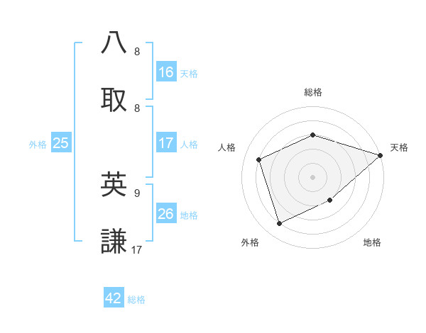 八取 英謙さんの外格は25画の4点!