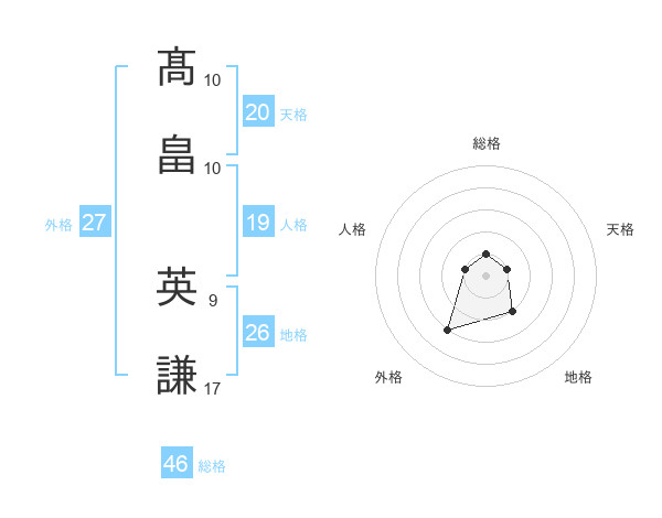 髙畠 英謙さんの総格は46画の1点!
