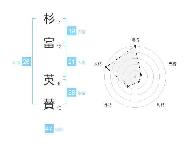 杉富 英賛さんの総格は47画の5点!