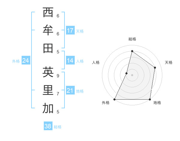 西牟田 英里加さんを姓名の画数から五運を鑑定