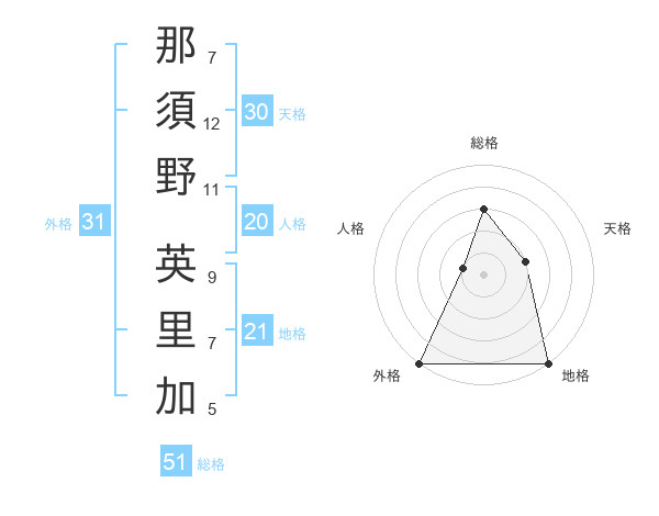 那須野 英里加さんを姓名の画数から五運を鑑定