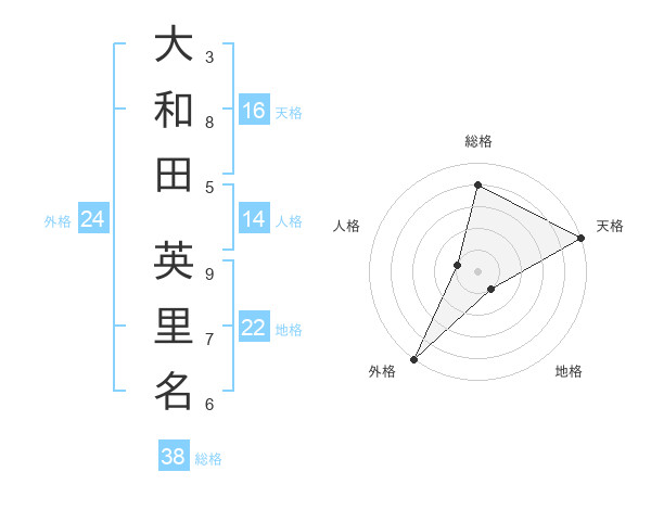 大和田 英里名さんの総格は38画の4点!