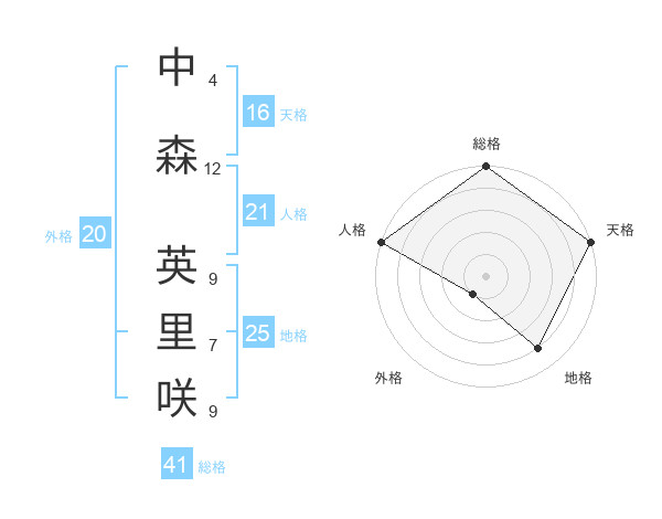 中森 英里咲さんを姓名の画数から五運を鑑定