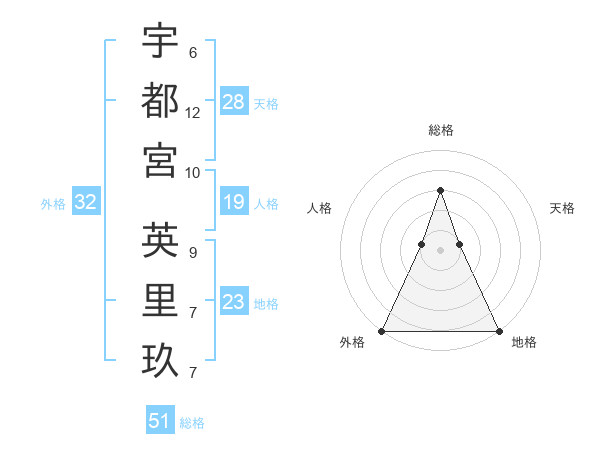 宇都宮 英里玖さんの総格は51画の3点!