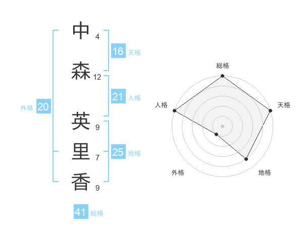 中森 英里香さんの天格は16画の5点!