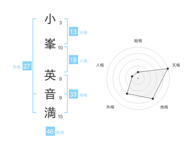 小峯 英音満さんを姓名の画数から五運を鑑定