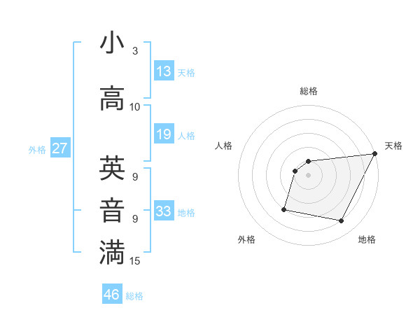 小高 英音満さんの天格は13画の5点!