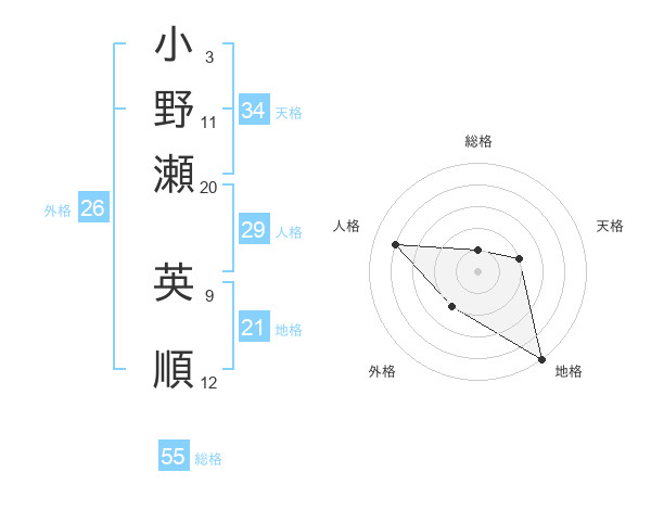 小野瀬 英順さんを姓名の画数から五運を鑑定