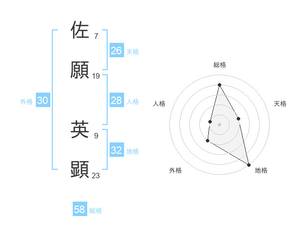 佐願 英顕さんを姓名の画数から五運を鑑定