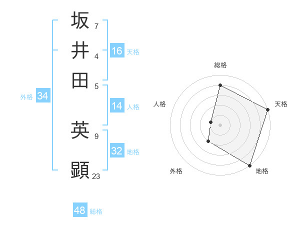 坂井田 英顕さんの総格は48画の4点!