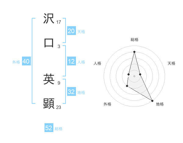 沢口 英顕さんの総格は52画の4点!