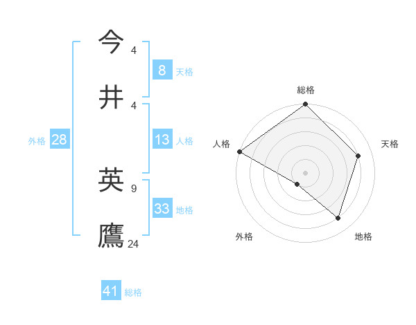 今井 英鷹さんを姓名の画数から五運を鑑定
