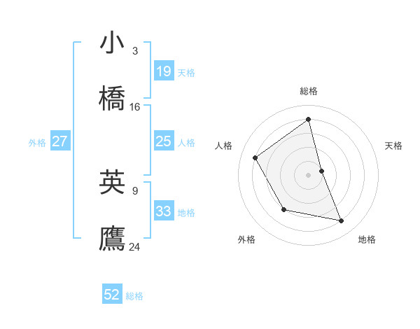 小橋 英鷹さんを姓名の画数から五運を鑑定