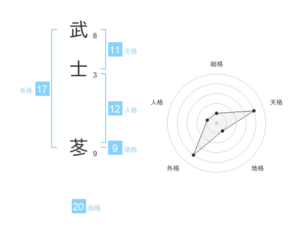 武士 苳さんの総格は20画の1点!