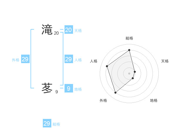 滝 苳さんの人格は29画の4点!