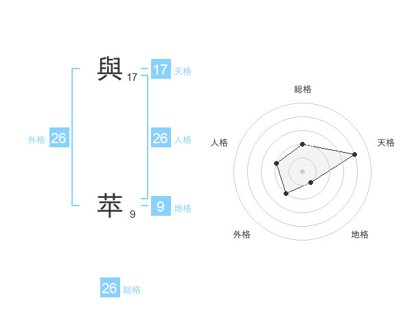 與 苹さんの総格は26画の2点!