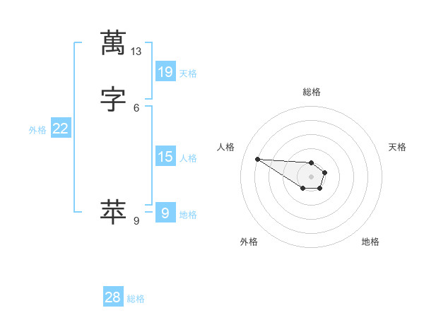 萬字 苹さんの天格は19画の1点!
