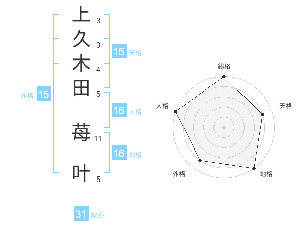 上久木田 苺叶さんを姓名の画数から五運を鑑定