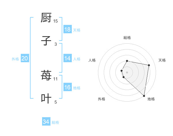 厨子 苺叶さんの天格は18画の4点!
