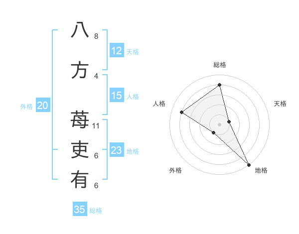 八方 苺吏有さんの外格は20画の1点!