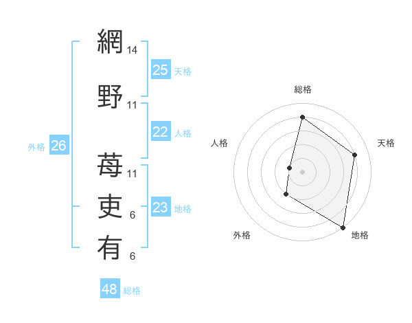 網野 苺吏有さんを姓名の画数から五運を鑑定
