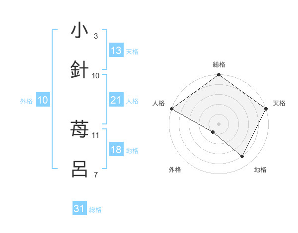 小針 苺呂さんを姓名の画数から五運を鑑定