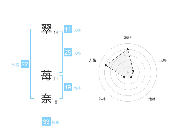 翠 苺奈さんを姓名の画数から五運を鑑定